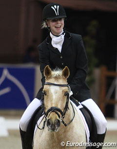 Suzanne Glas on Theo Diabolo. Unbelievably, she was one of the very few riders who actually broke a smile at the end of her test