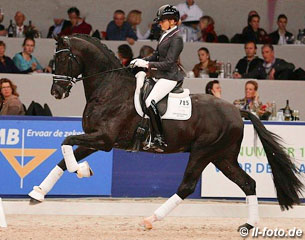 Emmelie Scholtens and Desperado at the 2014 KWPN Stallion Competition Finals in Den Bosch :: Photo © LL-foto