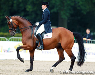 Year 2014 Event CDI Verden Horse Breanna Person Kathleen Raine Description Kathleen Raine on Breanna, a former Verden auction horse Photographer Astrid Appels Code 14_verden_raine_breanna_7575