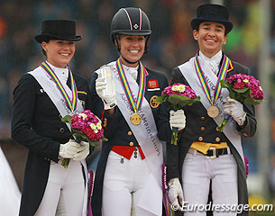 The kur podium with Kristina Sprehe, Charlotte Dujardin and Beatriz Ferrer-Salat at the 2015 European Championships in Aachen :: Photo © Astrid Appels