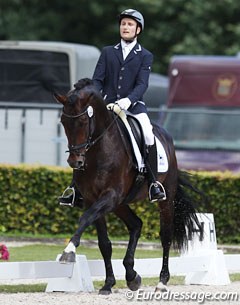 Russian Evgeny Sharangovich was eliminated as Goldfinch (by Jazz x Lingh) was unlevel. Rumour has it that the horse got kicked in the warm up by another horse..