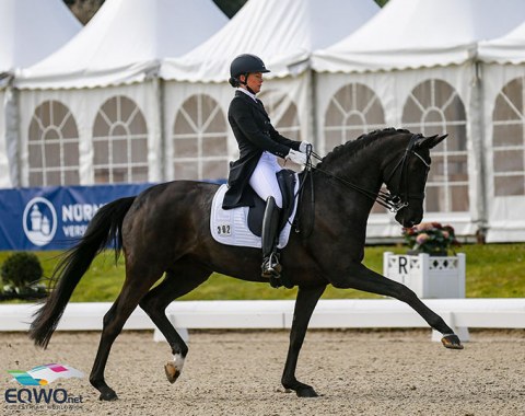 Kristina Bröring-Sprehe riding her first CDI in 13 months. Here on rising hope Saphira Royal