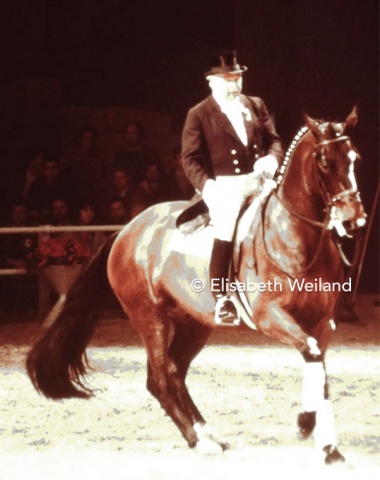 Willi Schultheis riding a demo on Cindy Ishoy's Dynasty at Equitana during the World Cup Finals