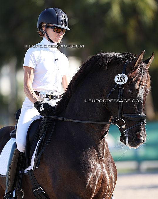 Lisa Wilcox on the "testosterony" PRE stallion Urbano FSR II