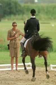 Coby van Baalen trains Delphine Meiresonne on Casper right before their winning ride at the 1998 European Pony Championships