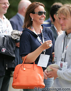 Cees' wife Tosca Visser shows her support for the Dutch team with her orange designer hand bag