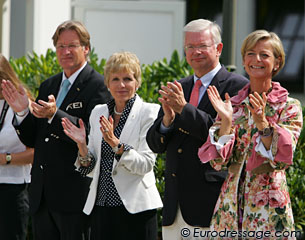 Frank Kemperman (FEI Dressage Committe Chair), Kathrina Wust (judge at C), Roland Koch (Minister President of the Hessian Province), Ann Kathrin Linsenhoff (show organizer)