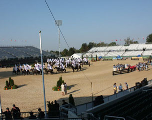 Riders practise for the 2010 WEG opening ceremony in the main arena