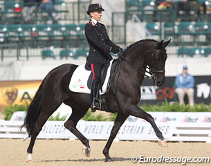 The second Italian individual rider was eventing rider Susanne Bordone on Dark Surprise. Beautiful extended trot but poor piaffe. They got stuck at 64.340% (52nd)