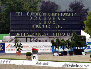 The score board at the 2005 European Championships :: Photo © Astrid Appels
