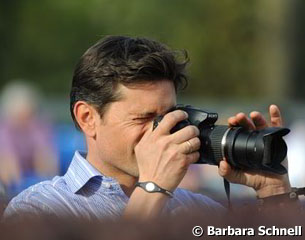 Donnperignon's former owner and rider Christoph Koschel taking pictures of Kasprzak on his "Pepe"