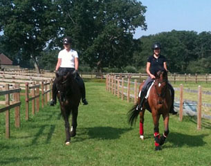 Anna Kasprzak (on Donnperignon) and Lisbet Seierskilde (Raneur) go for a stroll