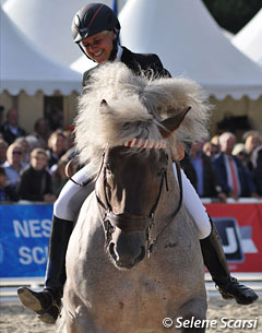 Uta Gräf test-riding a slightly "heavier" horse during a demo
