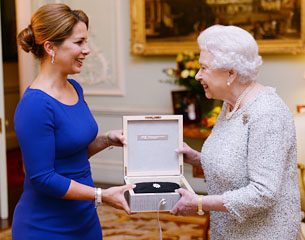 FEI President HRH Princess Haya presents the FEI Lifetime Achievement Award to Her Majesty Queen Elizabeth II at a ceremony in Buckingham Palace in the presence of the Duke of Edinburgh Prince Phillip and BEF ChairKeith Taylor
